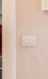 There are two light switches for the kitchen. The left-hand switch is for the main kitchen light. The right-hand switch has no function.