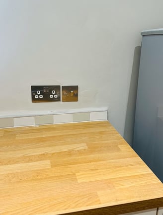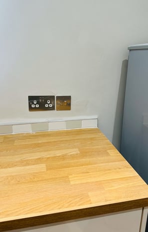 The socket itself is controlled by a fused switch which is above the worktop next to the fridge.