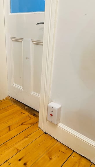 The switch for the electric shower for the main bathroom is located outside the bathroom door.